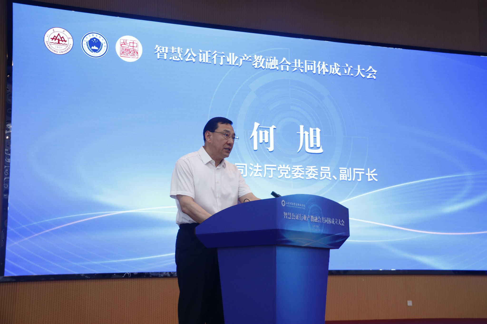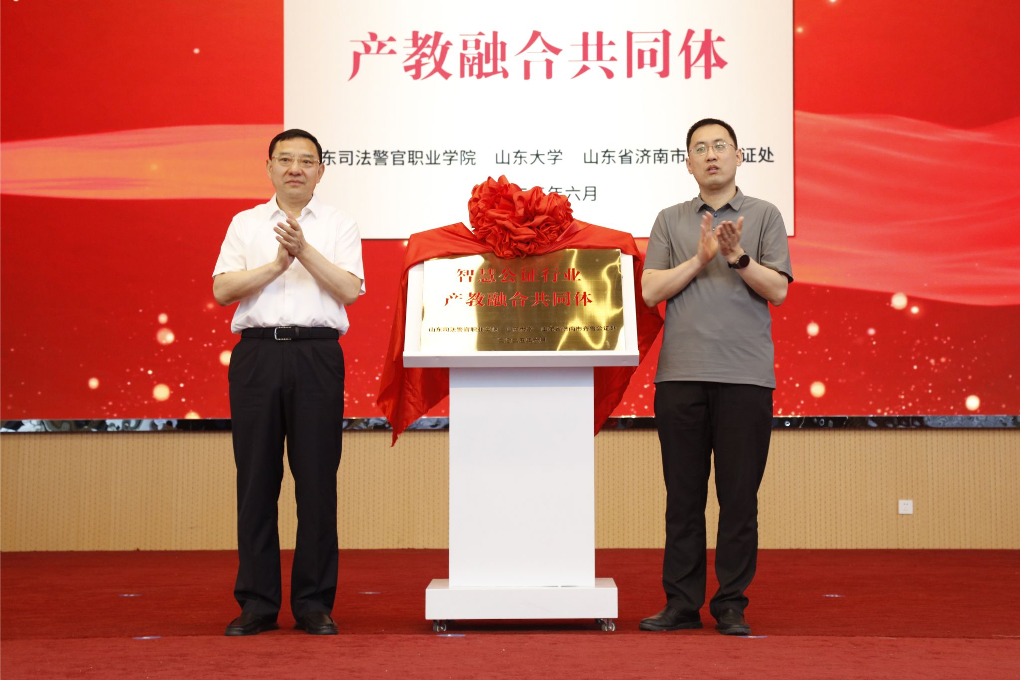 为深化产教融合,加强“政行企校”合作,推动公证事业高质量发展,6月13日,由山东大学、山东司法警官职业学院、山东省济南市齐鲁公证处共同牵头发起,全国50多家公证机构、高校、企业、科研机构及行业协会共同参与的智慧公证行业产教融合共同体成立大会在山东司法警官职业学院举行。