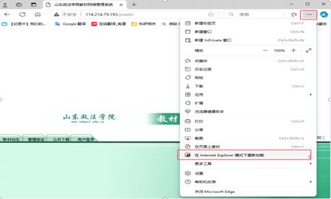 3、点击界面右上角三个点图标“设置及其他”,选择“在Internet Explorer模式下重新加载”。